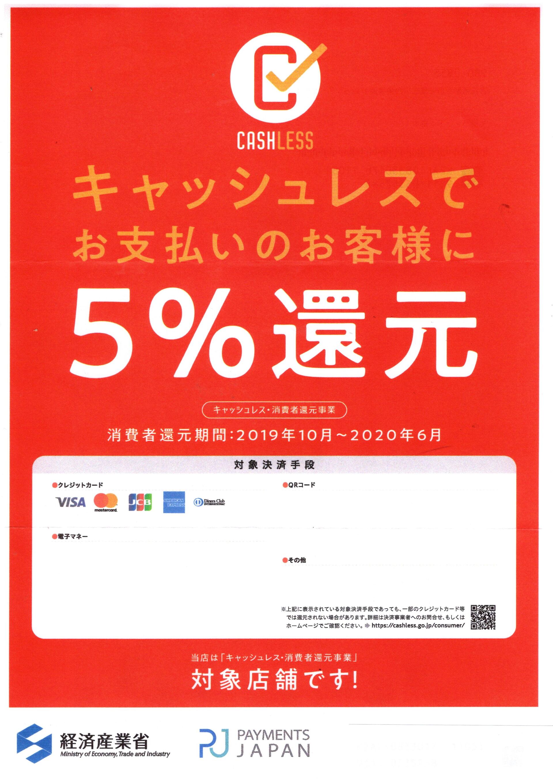 ご案内遅れましたが、キャッシレス5%還元、対象店舗になっています!
